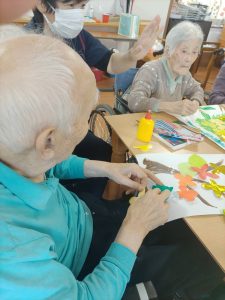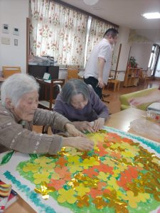 入間つつじの園トピックス 2025年11月18日 きんもくせい1番地 🖌芸術の秋🎨 秋と言えば芸術の秋🍂 きんもくせい1番地では、ユニット名にちなんで「金木犀」の壁画作成を行いました。大きな白い紙に金木犀の花を一つ一つ咲かせていきます。 丁寧に丁寧に・・・。皆さん協力して大きな木も作成しました。 それぞれの方の個性が光る作品が完成しました! きんもくせい1番地のユニットに飾ってありますので、面会にお越しの際には是非ご鑑賞していただき、 芸術の秋を楽しんでいただければと思います♪ 前の記事 次の記事 記事一覧 ホーム 理事長挨拶 法人概要・理念 施設案内 リクルート情報