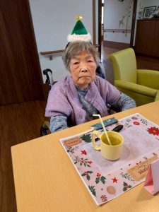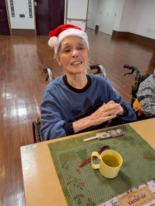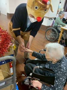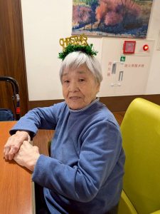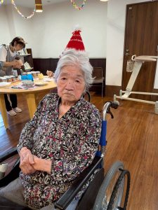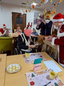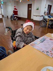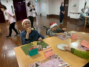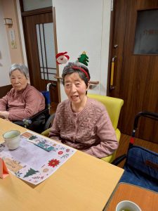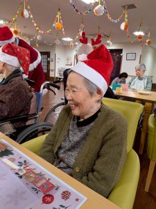 ちなみに、皆様がかぶられている帽子やカチューシャについて、強制はしていませんよ!「私のは?」「私もサンタさんの帽子がいいなぁ」とこちらがびっくりするくらい、積極的にかぶってくださいました。楽しい雰囲気をつくるのに、年齢は関係ありませんね。