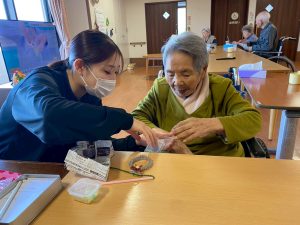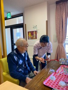 入間つつじの園トピックス 2025年11月23日 はなもも2番地 クリスマスリースづくり はなもも2番地ではモールを使って小さなクリスマスリースづくりを行いました。 細かな作業でしたが、みなさんとても器用に丁寧に制作されていました。 実習で来ていた大学生もお手伝いしてくれて・・・ 出来上がったリースを見て、「かわいいね」「どこに飾ろうか?」と笑顔があふれるひと時となりました。 前の記事 次の記事 記事一覧 ホーム 理事長挨拶 法人概要・理念 施設案内 リクルート情報