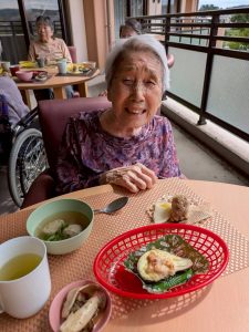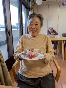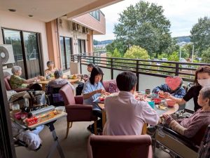 入間つつじの園トピックス 2025年11月18日 ひまわり1番地 ♪秋のお食事会♬ 寒さが本格的になる前に、2階のホールのベランダで、秋の味覚を味わうお食事会を行いました! 青空のもとで、秋の風を感じながら、皆さん美味しそうに召し上がっていらっしゃいました。 おやつには、フルーチェに一工夫加えて、どんな食事形態の方でも食べられるデザートに仕上げたイチゴスイーツを。食欲の秋を堪能していただきました!(^^)!。 前の記事 次の記事 記事一覧 ホーム 理事長挨拶 法人概要・理念 施設案内 リクルート情報