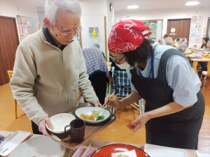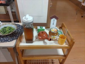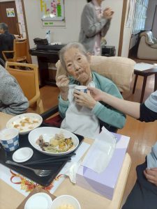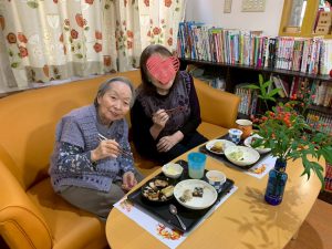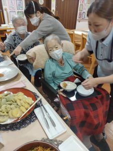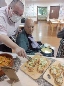 1階のクレマチスでは、毎月、1番地と2番地合同で食事レクリエーションを開催しています。