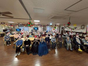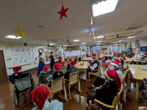 クリスマスの曲を中心に、クラシックや馴染みのある童謡、歌謡曲など盛りだくさんの20分間!!皆さん、生のフルートの演奏にうっとり…。普段は1箇所にじっとしているのが苦手な方も演奏中は20分間全く動くことなく耳を傾けていらっしゃいました。他にもどんなレクをしてもなかなか表情を動かさない入居者様が笑顔になったり、感動で涙を流したり…。普段は見られない一面をたくさん見ることができました。