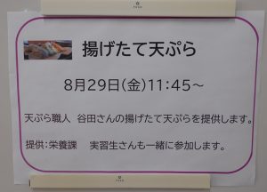 ケアハウスでは、8月末に揚げたて天ぷらの行事を行いました( *´艸`)