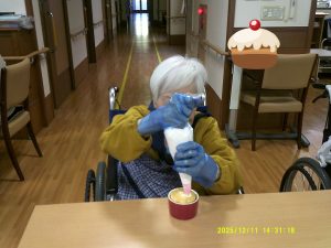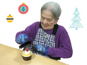 ショートケーキを作りたいというリクエストを受け一人ずつ作りやすいようにカップケーキにしました🎂中にはバナナが挟んであります♪皆さんには上の飾りつけをやっていただきました🎄