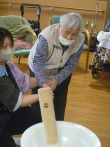 続いて、つつじでは餅つき大会を開催しました⛄