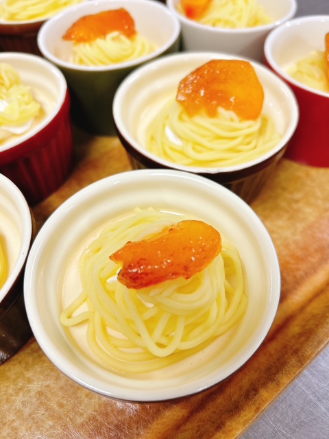 まず、もみじではビンゴ大会の後にさつまいもモンブラン風にしたプリンを提供しました🧁