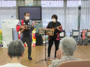 ウクレレ演奏でふるさとを合唱したり、