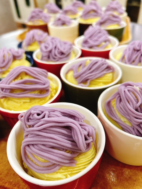 今回は豪華に紫芋も使用して2色のモンブランとなっています💜