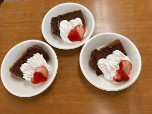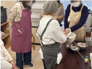 泡立て・混ぜる・型に流す・焼くという工程を一つ一つ丁寧に行いました。