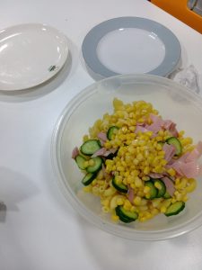 本日はみんなでカレー&マカロニサラダ&デザートのシフォンケーキまで作りました♪