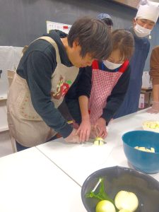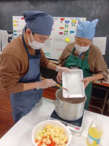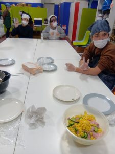 野菜を切ったり、具材を炒めたり、みんなで分担しながら進めました!