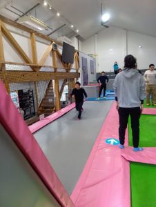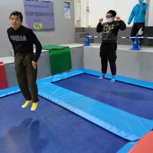 座って飛んだり、走り込んでボールにタッチしにチャレンジして