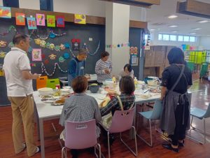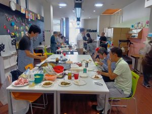 ホットプレートを囲み、皆でそれぞれ分担して協力しながら