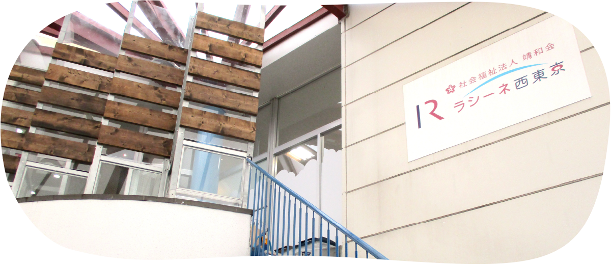 「ラシーネ西東京」は社会福祉法人靖和会の障害部門、社会生活支援に力を注いでいる「生活介護・就労継続支援B型」の通所施設です。ラシーネとは、フランス語で『ねっこ・原点』を意味します。